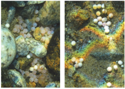 A first step in considering placement of spawning gravel as a measure would be to assess if the total and distribution of spawning areas are limiting the development of fish population, i.e. diagnosis in the environmental design terminology. The spawning areas are often assessed by visual inspection of the river, i.e. by foot beside the river, by wading or from boat. Aerial photos can also in some cases assist this step. When the spawning areas are identified, they can be mapped in a GIS and the total area and their distribution assessed. For Atlantic salmon, spawning areas are considered being large if more than 10% of the total river has suitable spawning conditions, moderate if between 1-10% and small if less than 1% (Forseth and Harby 2013). The distribution/spread is considered large if more than 500 meters between identified spawning areas, medium if between 200-500 meters, and small if less than 200 meters. These threshold values are considered indicative for Atlantic salmon, but they may be different for other fish species.
