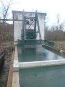 At the power plant a baffle fish pass was built in 2014. It has a slope of 16% and maintains a flow of 150 l/s. It consists of a succession of 5 portions of baffle (0.5 x 7.5 m) connected by pools of 3 x 2 x 1 m. It allows salmonids to go upstream. There is a specific device for eels: it is composed of 2 portions of 3 and 9 m length and a slope of 25 to 30 %, connected by resting pools (1.5 x 1.0 x 0.5 m). The flow allocated to the fish pass is only a few liters per second. These devices target the fish using the tailrace channel to go upstream.