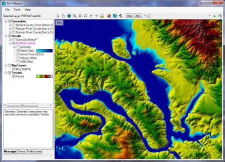HEC-RAS has an internal GIS tool (RAS Mapper) which provides flexible viewing and manipulation of integrated 1D and 2D results, greatly enhancing the pre- and post-processing capabilities of data within the software.