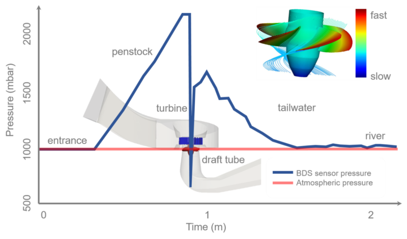 Conceptual sketch of the vortex tube functionality and vortex tube outlet at HPP Schiffmühle |