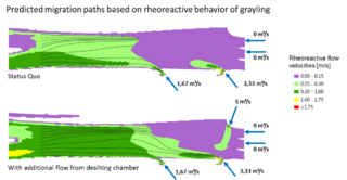 Predicted migration paths based on rheoreactive behaviour of grayling. |