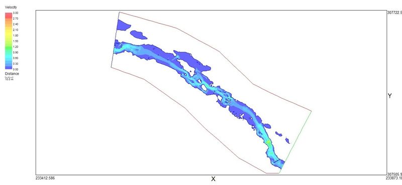 Water velocity (m/s) output from River 2D. Ocreza River, Portugal |