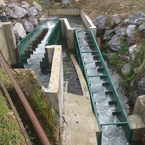 The baffle fishway at Trois Ville hydropower plant. |